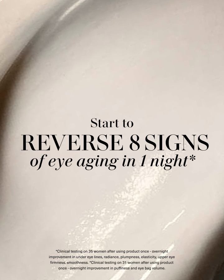 *Consumer testing on 35 women after using The Rejuvenating Eye Cream once - overnight improvement in under eye lines, radiance, plumpness, elasticity, upper eye firmness, smoothness.